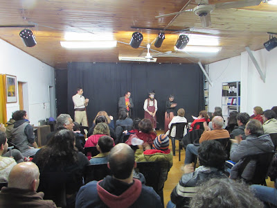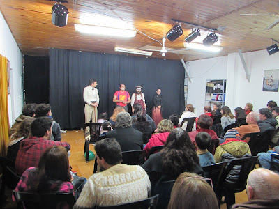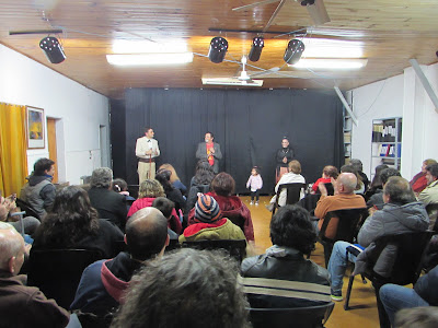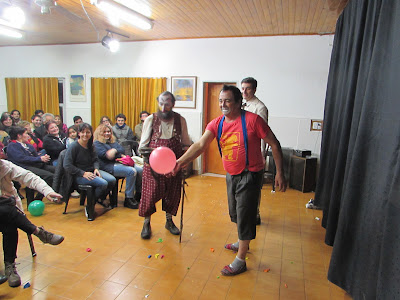 Un gran cantidad de público disfrutó de la Varieté Clownística en el Saloncito (Tucumán 142, JM Ezeiza), el sábado 8 de julio de 2017. Giorgia López Lo Celso, Alejandro Sikora, Chake Ton y Microbio Bufoneta hicieron reír y pensar a los presentes con una ajustada propuesta artística, que incluyó desde el humor más tierno de los clowns hasta la mordacidad de los bufones. Performances, versiones de canciones clásicas y títeres fueron algunos de los recursos desplegados por los artistas que interactuaron exitosamente con un público que los premió con risas y aplausos. La presentación contó con el auspicio de La Palabra de Ezeiza.